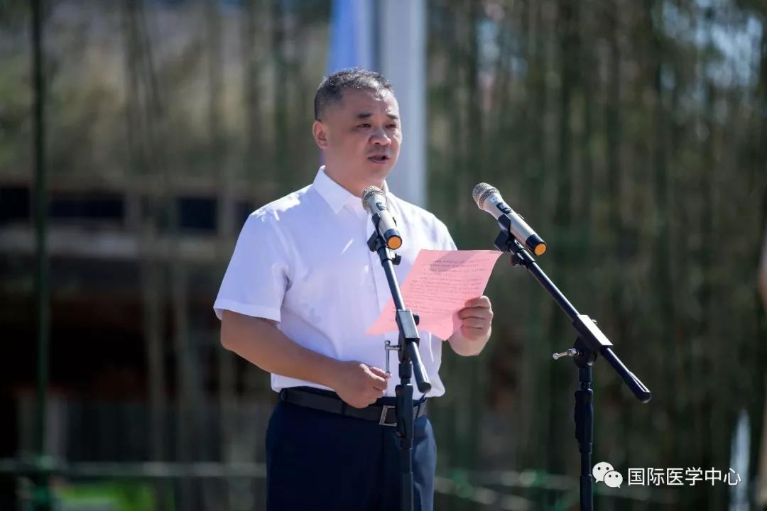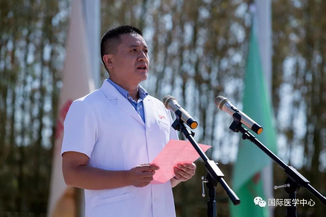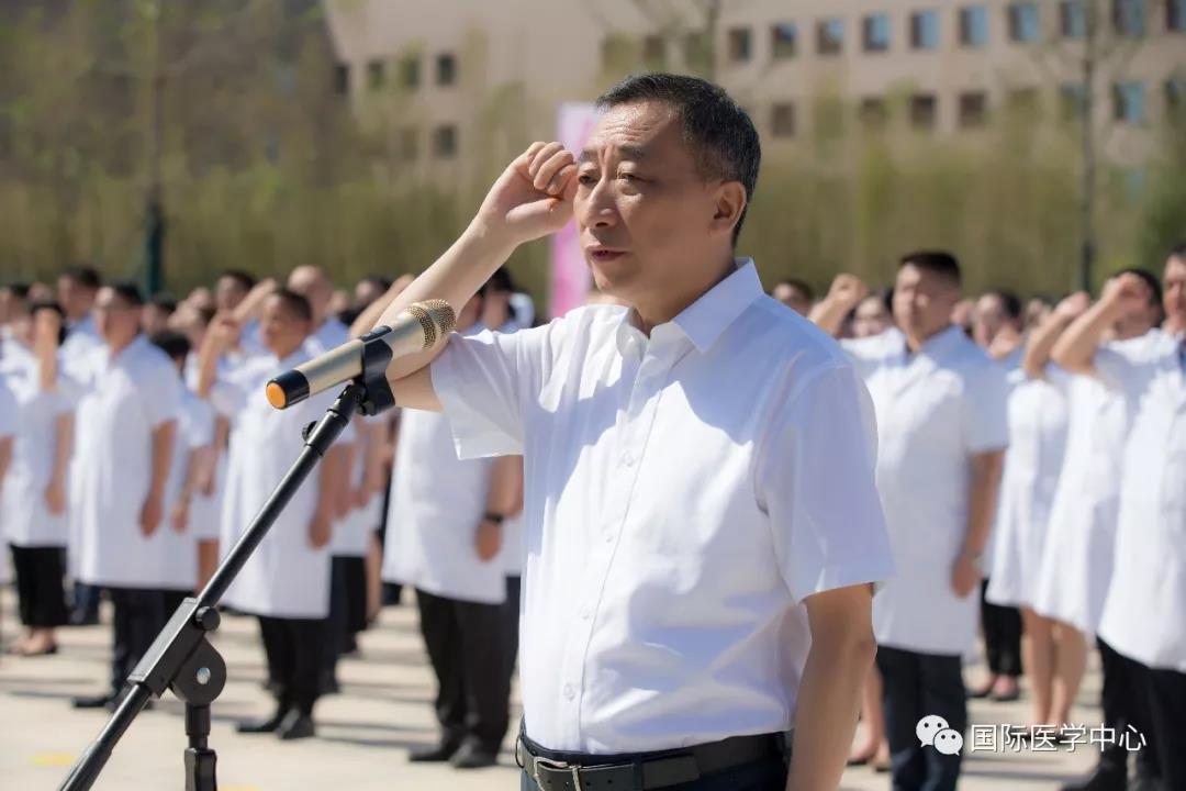 儀式開始,王志峰總經(jīng)理發(fā)表了熱情洋溢的致辭,歡迎來自五湖四海的各位醫(yī)療及醫(yī)療保障工作者們,并祝賀大家成為西安國(guó)際醫(yī)學(xué)中心的開拓者、創(chuàng)業(yè)者。他表示,經(jīng)過近一年的密集籌備、人員引進(jìn),我中心首批員工到崗,其中學(xué)科帶頭人和骨干來自全國(guó)知名三甲醫(yī)院,可謂人才濟(jì)濟(jì),精英薈萃,具備揚(yáng)帆遠(yuǎn)航的實(shí)力。全體員工是西安國(guó)際醫(yī)學(xué)中心建設(shè)的基石、發(fā)展的核心動(dòng)力。合格的國(guó)際醫(yī)學(xué)人,應(yīng)該是以至善之心博愛天下,以服務(wù)社會(huì)積微致遠(yuǎn)。秉承讓“患者有尊嚴(yán)的生活,醫(yī)者有尊嚴(yán)的工作”的價(jià)值觀,珍惜機(jī)遇,牢記誓言,不忘初心,砥礪前行。匯聚人類生命科學(xué)智慧,同步國(guó)際頂尖診療水平。為了一個(gè)共同的目標(biāo)凝聚一起,共同“佑護(hù)無法衡量的價(jià)值”!