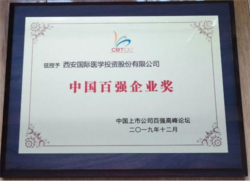 為表彰2019年中國(guó)上市百?gòu)?qiáng)企業(yè)和杰出企業(yè)家取得的杰出成績(jī),論壇為到會(huì)的中國(guó)百?gòu)?qiáng)企業(yè)頒發(fā)了“中國(guó)百?gòu)?qiáng)企業(yè)獎(jiǎng)”及部分個(gè)人獎(jiǎng)項(xiàng),西安國(guó)際醫(yī)學(xué)投資股份有限公司喜獲 “中國(guó)百?gòu)?qiáng)企業(yè)獎(jiǎng)”殊榮。