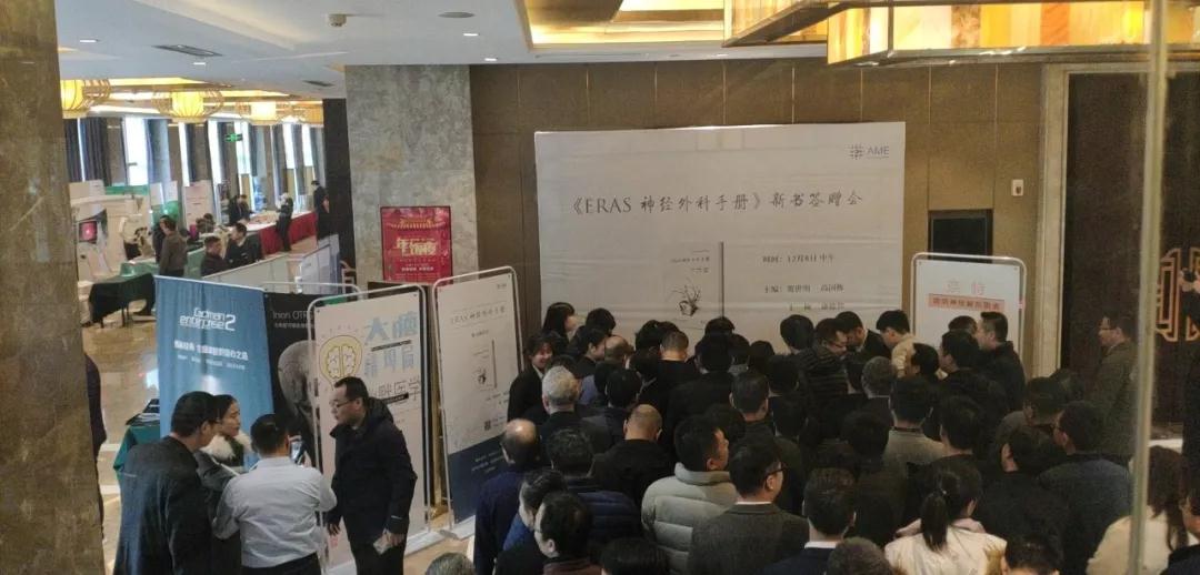 會上,AME汪道遠社長、高國棟教授、賀世明教授為活動揭幕。隨后還舉行了《ERAS神經(jīng)外科手冊》簽贈活動。此書是我國首本將ERAS運用于神經(jīng)外科后編著出來的手冊,在場的同仁期望頗高?;顒右婚_始,大家排起了長隊,希望獲得各位專家的親筆簽名。在現(xiàn)場,大家就書中熱點展開討論。