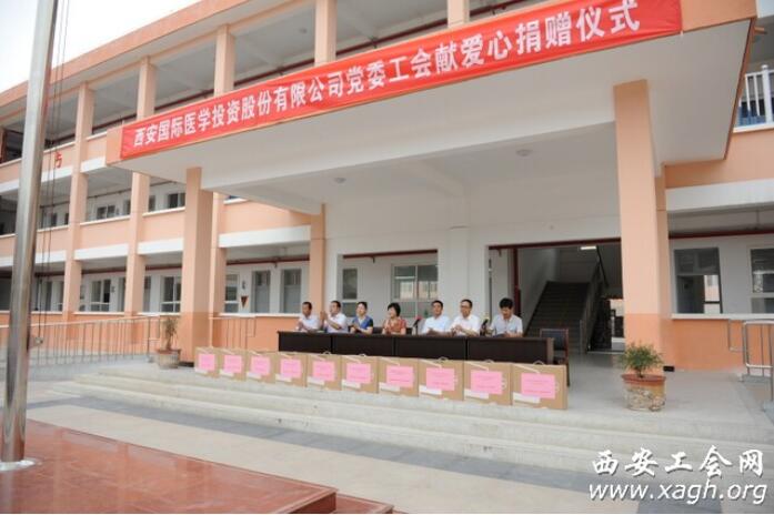六一前夕,由西安市財(cái)貿(mào)工會(huì)、西安市教科文衛(wèi)工會(huì)和西安國際醫(yī)學(xué)投資股份有限公司聯(lián)合發(fā)起的“真情牽手、愛心助學(xué)”捐贈(zèng)活動(dòng)在戶縣蔣村鎮(zhèn)甘西小學(xué)進(jìn)行。