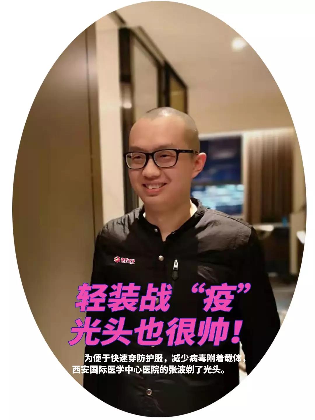 “光頭也挺帥!”大家為男護士張波隊長剃掉了頭發(fā)。張波笑著說,第一次成了光頭,有點不適應呢。這樣好,方便穿脫防護服,做好醫(yī)療工作。