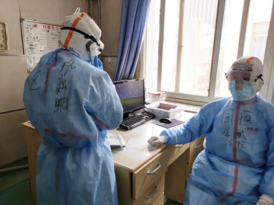 進(jìn)入病區(qū)后,韓新鵬每天披星戴月,忙碌的身影奔波在病區(qū)間、隊員間和各種工作協(xié)調(diào)中。2月6日,他及其團(tuán)隊進(jìn)入病區(qū),患者集中入駐,接診壓力大,在4小時的工作時間里,他緊急接診,處理了10多位患者,保證了患者生命體征平穩(wěn)。