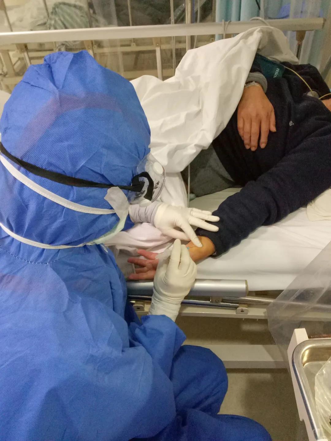 病區(qū)當(dāng)天收治了36位重癥患者,雖然早有準(zhǔn)備,但現(xiàn)實(shí)比張波想象的復(fù)雜。N95口罩和外科口罩、帽子、防護(hù)服、手套、長靴套、隔離衣、眼罩……層層防護(hù)服下,張波的視覺、聽覺、觸覺都受到影響。視線受限于起霧的護(hù)目鏡,寬大厚實(shí)的手掌戴了好幾層手套,原本動(dòng)脈采血、靜脈采血、留置針穿刺、輸液以及生命體征測(cè)量等熟悉的基本治療,操作起來異常艱難。