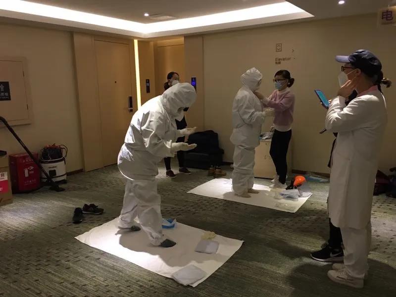 從伴隨清晨第一縷陽光睜眼開始,測(cè)體溫、多飲水、適當(dāng)運(yùn)動(dòng)鍛煉呼吸、84消毒液噴灑涂抹房間角角落落等等,一樣不落。我自知已經(jīng)踏上這光榮的戰(zhàn)場(chǎng)和兄弟姐妹們并肩作戰(zhàn)。同時(shí),為了做好戰(zhàn)斗準(zhǔn)備,作為戰(zhàn)士的我們今日進(jìn)行了穿脫“盔甲”的嚴(yán)格培訓(xùn)。