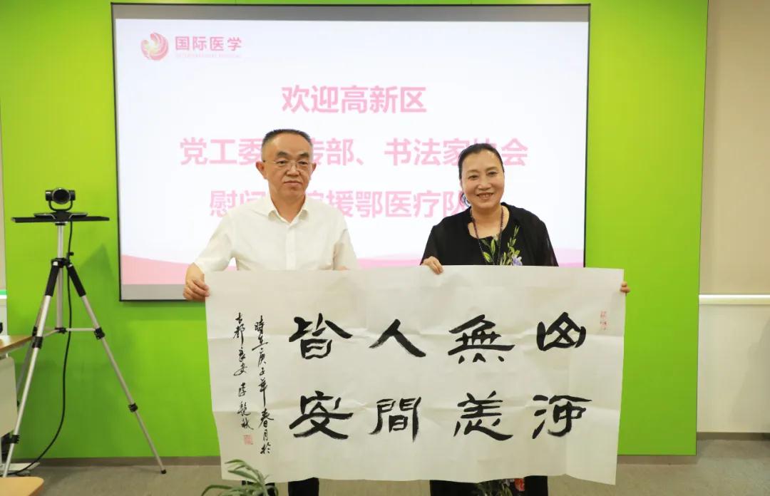 5月12日第109個國際護士節(jié),西安高新區(qū)黨工委宣傳部、書法家協(xié)會一行14人蒞臨西安國際醫(yī)學中心醫(yī)院,以書籍和書法作品慰問在疫情期間馳援湖北的抗疫英雄,向他們致以崇高的敬意。醫(yī)院總經(jīng)理王志峰、副院長楊峰等領導和護理人員代表參會。