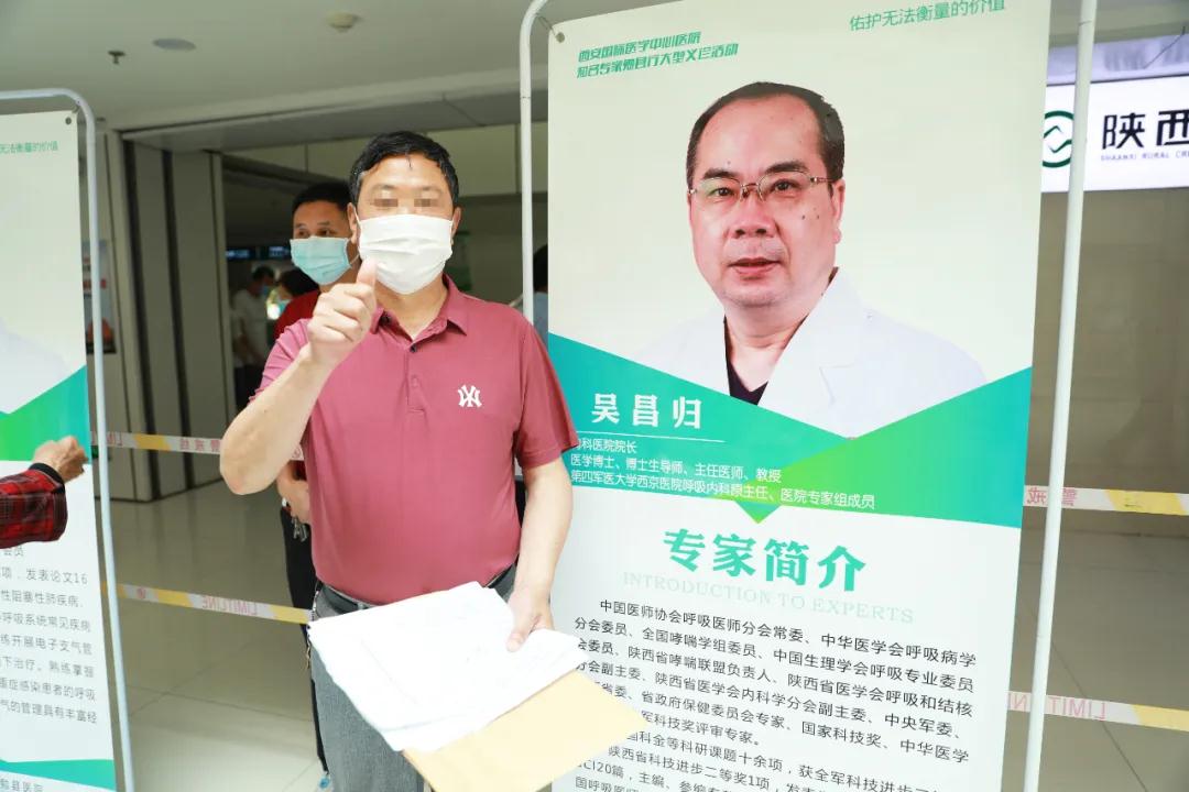 “聽吳院長給我說的這些話,我現(xiàn)在一點都不怕了,心里真的踏實了?!本驮\后,郭先生專門和吳昌歸院長的海報合了一張影!