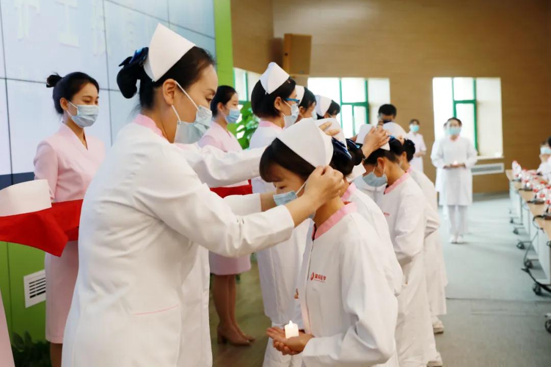 會上,李武平副院長宣讀《關(guān)于十佳護(hù)士及優(yōu)秀護(hù)士的表彰決定》。熠熠燭光中,院領(lǐng)導(dǎo)為50名新護(hù)士代表授帽?!坝嘀?jǐn)以至誠,終身純潔,忠貞職守……?”在張敏主任的引領(lǐng)下,新護(hù)士們重溫南丁格爾誓詞。
