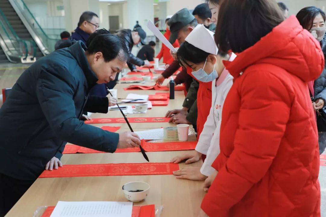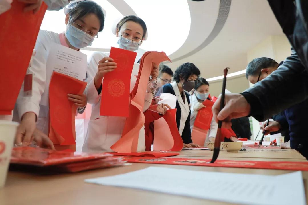 室外寒冬隆隆,室內(nèi)暖意融融,門(mén)診大廳人潮涌動(dòng)。集五福,來(lái)西安國(guó)際醫(yī)學(xué)中心醫(yī)院!火紅的“?!弊譅I(yíng)造出喜慶祥和的氛圍,活動(dòng)邀請(qǐng)了中國(guó)榜書(shū)家協(xié)會(huì)副主席兼中國(guó)社會(huì)藝術(shù)委員會(huì)副會(huì)長(zhǎng)、中國(guó)榜書(shū)家協(xié)會(huì)陜西省分會(huì)主席雷婉萍及陜西省書(shū)法家協(xié)會(huì)、西安市書(shū)法家協(xié)會(huì)的名家和院內(nèi)書(shū)法愛(ài)好者們親筆書(shū)寫(xiě)春聯(lián)。一幅幅金鉤鐵劃的春聯(lián)飽含真摯祝福,一個(gè)個(gè)飄逸靈動(dòng)的漢字躍然紙上。除了傳統(tǒng)春聯(lián)還有新年新意,宣傳策劃部征集的原創(chuàng)春聯(lián)內(nèi)容積極向上,以新春祝福、歌頌西安國(guó)際醫(yī)學(xué)中心醫(yī)院為主題,溫暖的祝福送大家,受到一致好評(píng)。