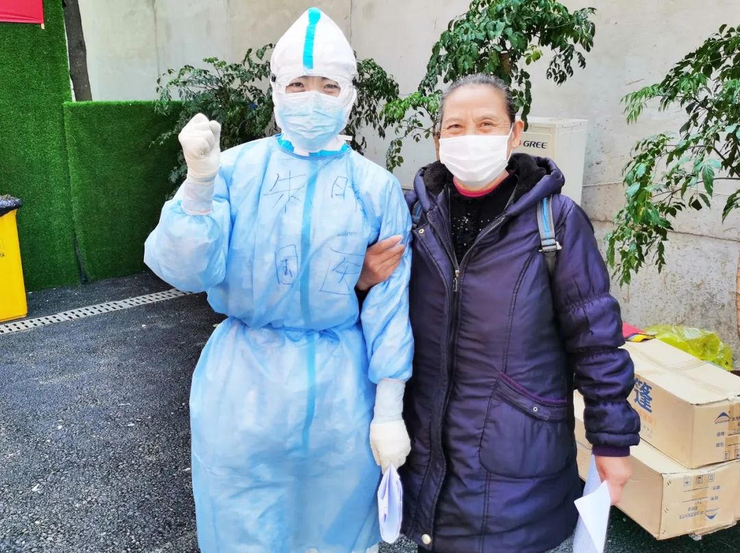 “阿姨你咋還不走呢?”護(hù)士長(zhǎng)朱晴看到一位“熟人 ”還站在驛站門(mén)口。這位阿姨的老伴兒感染新冠不幸去世,她和兒子都被傳染,從醫(yī)院到康復(fù)驛站后出現(xiàn)了嚴(yán)重應(yīng)激反應(yīng),失眠,哭泣,休息不好,血壓升高,胃口很差。除了關(guān)注阿姨的身體狀況外,朱晴時(shí)常寬慰她,要保重身體和兒子一起回家。“我要和你留個(gè)照片,以后一定要去西安看你。當(dāng)面感謝你們醫(yī)療隊(duì)!”阿姨挽著朱晴的胳膊說(shuō)。