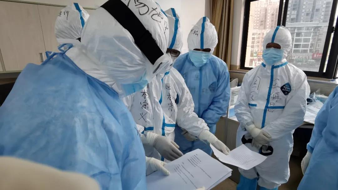 越是困難大,越要向前沖。王海昌穿上嚴實的防護服、戴上專業(yè)的口罩、戴上2層手套扎緊袖口,撕開防護衣胸前封條貼近縫隙,蓋上防護面罩……他的全身被白色防護服裹得嚴實,僅顯出護目鏡下的雙眼。為鼓勁,他們在防護服前胸和后備用馬克筆寫上姓名,又在防護服背面空白添上“加油”的字及感嘆號。