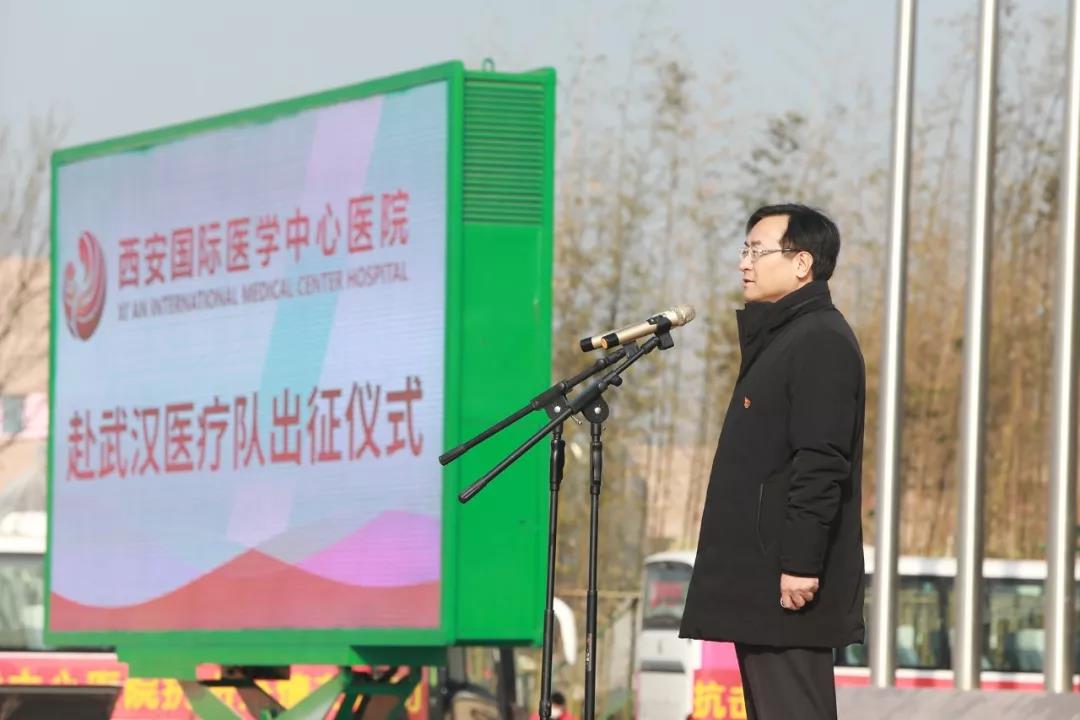 陜西省衛(wèi)健委黨組書記劉勤社說,我代表省委省政府應(yīng)對(duì)新型冠狀病毒感染肺炎疫情工作領(lǐng)導(dǎo)小組和辦公室,為大家送行。西安國際醫(yī)學(xué)中心醫(yī)院率先擔(dān)當(dāng)使命,主動(dòng)組織醫(yī)療隊(duì),感謝你們。希望大家堅(jiān)定信心、同舟共濟(jì)、科學(xué)防治、精準(zhǔn)施策,我們盼望大家凱旋歸來。