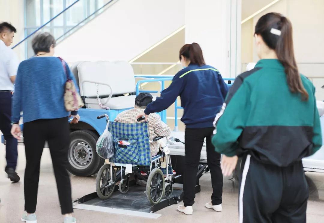 義診現(xiàn)場(chǎng)有位96歲的老人,因下肢水腫在家屬陪同下來院咨詢,心臟內(nèi)科李艷副主任醫(yī)師接待患者并悉心解答問題。因患者乘坐輪椅行動(dòng)不便,我院為其提供了“招手?!彪娖寇嚪?wù),電瓶車的升降臺(tái)為患者上下車提供很大便利。家屬表示“很貼心,從來沒有在醫(yī)院見過這樣的服務(wù)!”