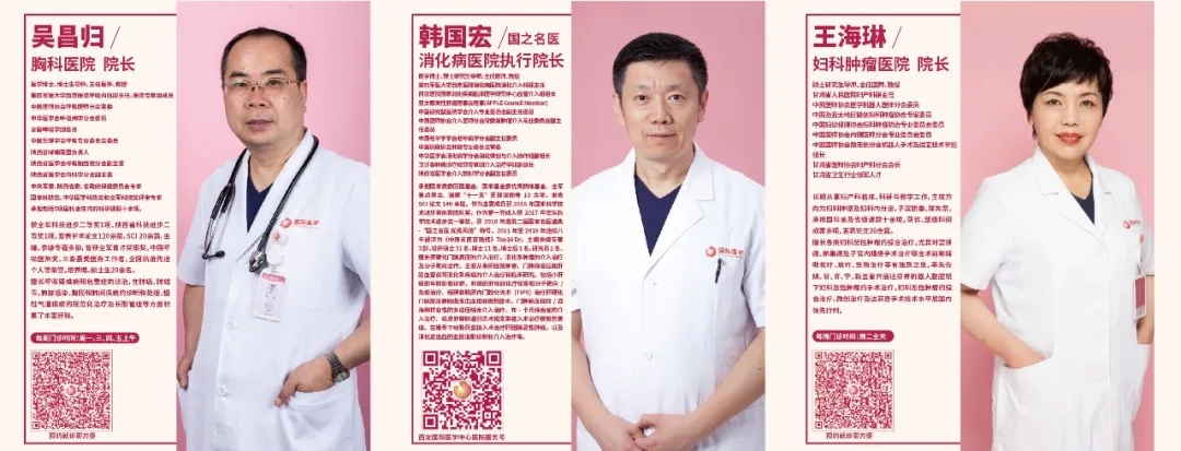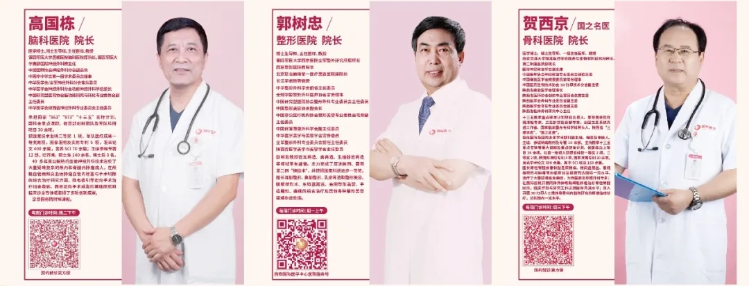 沒有名師就沒有名科,沒有名科就沒有名院。腦科醫(yī)院院長、中國醫(yī)師協(xié)會神經(jīng)外科分會副會長、第四軍醫(yī)大學唐都醫(yī)院腦科醫(yī)院原院長高國棟;整形醫(yī)院院長、中華整形外科學會前任主任委員、第四軍醫(yī)大學西京醫(yī)院整形醫(yī)院原院長郭樹忠;骨科醫(yī)院院長、國之名醫(yī)、中國醫(yī)師協(xié)會神經(jīng)修復專業(yè)委員會主委、西安交通大學第二附屬醫(yī)院原院長賀西京;腫瘤醫(yī)院院長、中華醫(yī)學會腫瘤分會常委、西安交通大學第一附屬醫(yī)院腫瘤內科原主任南克?。恍呐K病醫(yī)院院長、中國醫(yī)師協(xié)會心血管內科分會常務委員、第四軍醫(yī)大學西京醫(yī)院心臟內科原主任王海昌;血液病醫(yī)院院長、中國醫(yī)師協(xié)會血液科醫(yī)師分會常務委員、第四軍醫(yī)大學唐都醫(yī)院血液病科原主任梁英民;胸科醫(yī)院院長、中華醫(yī)學會呼吸病學分會委員、第四軍醫(yī)大學西京醫(yī)院呼吸內科原主任吳昌歸;消化病醫(yī)院執(zhí)行院長、中國研究型醫(yī)院學會介入專業(yè)委員會副主任委員、第四軍醫(yī)大學西京醫(yī)院消化病醫(yī)院消化介入科原主任韓國宏;婦科腫瘤醫(yī)院院長、中國醫(yī)師協(xié)會醫(yī)學機器人醫(yī)師分會委員、甘肅省人民醫(yī)院婦產(chǎn)科原主任王海琳……一大批在醫(yī)界有影響力的大咖相繼加盟。