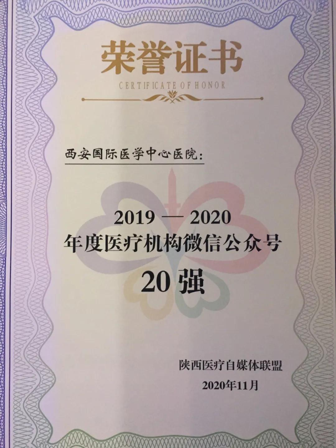 11月25日,由陜西省衛(wèi)生健康委員會(huì)、陜西省醫(yī)師協(xié)會(huì)指導(dǎo),陜西醫(yī)療自媒體聯(lián)盟、陜西省衛(wèi)生健康干部培訓(xùn)中心承辦的第二屆陜西健康傳播創(chuàng)新大會(huì)在西安召開。西安國際醫(yī)學(xué)中心醫(yī)院微信公眾號(hào)榮獲2020年陜盟醫(yī)療機(jī)構(gòu)微信公眾號(hào)第六名。
