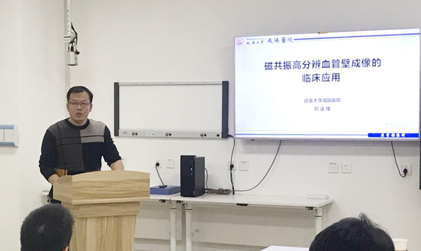 劉連峰教授給大家?guī)怼洞殴舱窀叻直嫜鼙诔上竦呐R床應(yīng)用》的專題匯報,劉教授首先介紹了延安大學(xué)咸陽醫(yī)院的基本概況,然后從磁共振高分辨血管壁成像的掃描前準(zhǔn)備和技術(shù)要求等角度講解,通過多個病例,詳細(xì)分析了高分辨率磁共振血管壁成像技術(shù)(HRMR-VWI)在頸部和顱內(nèi)血管病變中的臨床應(yīng)用,指出HRMR-VWI是一項實用性很強(qiáng)的技術(shù),我們要結(jié)合患者的自身情況,切實為患者服務(wù)。