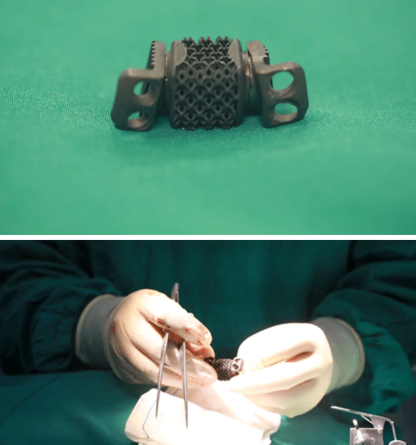 12月1日,西安國際醫(yī)學(xué)中心醫(yī)院骨科醫(yī)院脊柱外科賀西京團(tuán)隊為一位63歲脊髓型頸椎病伴不完全癱瘓的患者實施了頸4椎體椎間盤切除、3D打印Ti6Al4V合金可動人工頸椎——椎間盤復(fù)合體植入術(shù)。