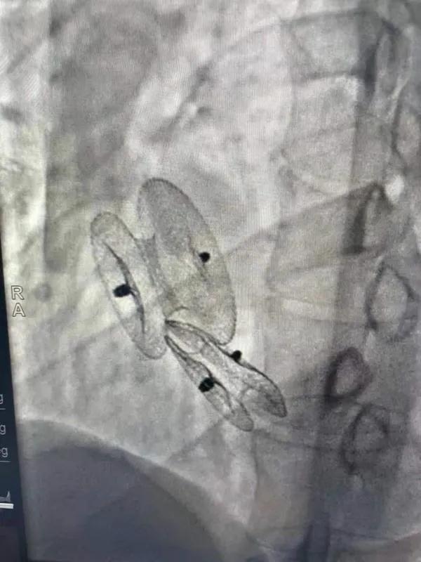 在詳細(xì)了解患者病情,仔細(xì)閱讀患者影像資料后,曾廣偉主任已經(jīng)有了清晰的手術(shù)策略。在精心的準(zhǔn)備和團(tuán)隊的配合下,曾主任順利的利用兩個封堵器對房缺進(jìn)行了封堵。