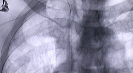按照術(shù)前制定的方案,郭穎強(qiáng)主任和楊金保博士首先嘗試開(kāi)通閉塞的右腎動(dòng)脈,但由于血栓機(jī)化、鈣化嚴(yán)重,右腎動(dòng)脈難以開(kāi)通。遂謹(jǐn)慎擴(kuò)張狹窄的左腎動(dòng)脈,并成功植入一枚支架。之后經(jīng)過(guò)反復(fù)旋磨、抽吸,順利開(kāi)通髂動(dòng)脈,但腹主動(dòng)脈閉塞段仍難以擴(kuò)通。此時(shí),患者居高不下的血壓很快恢復(fù)到正常水平。