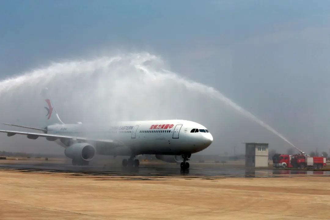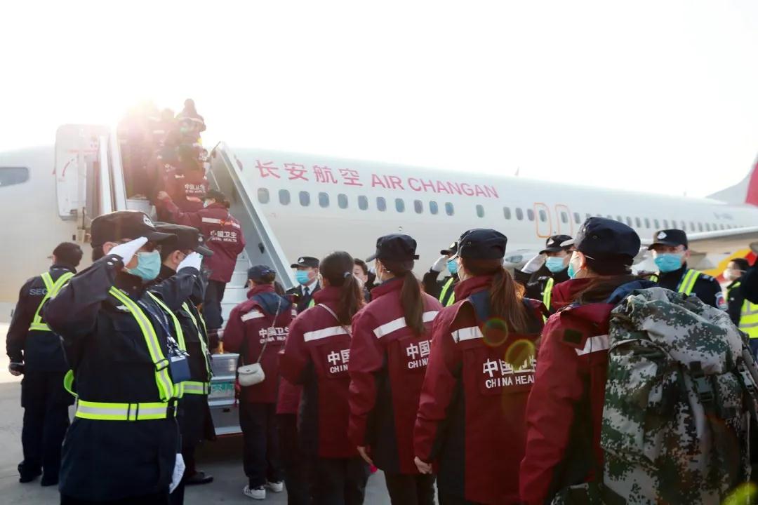 2020年3月24日下午,當(dāng)兩架滿載 “白衣戰(zhàn)士”的包機(jī)降落下來,依次沿著寬闊平坦的跑道滑行時(shí),兩邊早已準(zhǔn)備好大功率消防車,轟然噴出兩股清泉似的水柱,形成了一道銀亮亮的“水門”,在滿天晚霞的映照下,如同天空中升起一道美麗的彩虹。