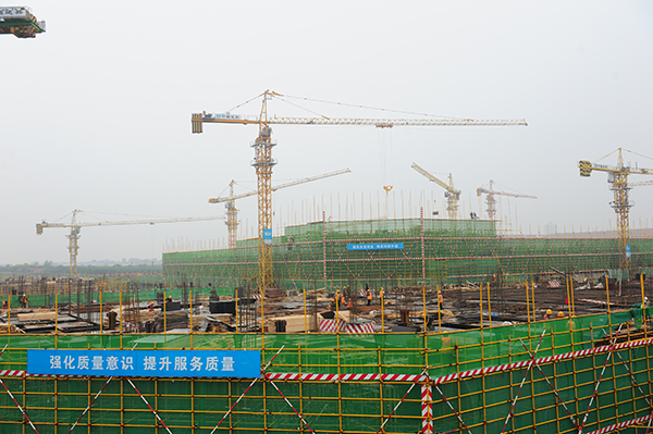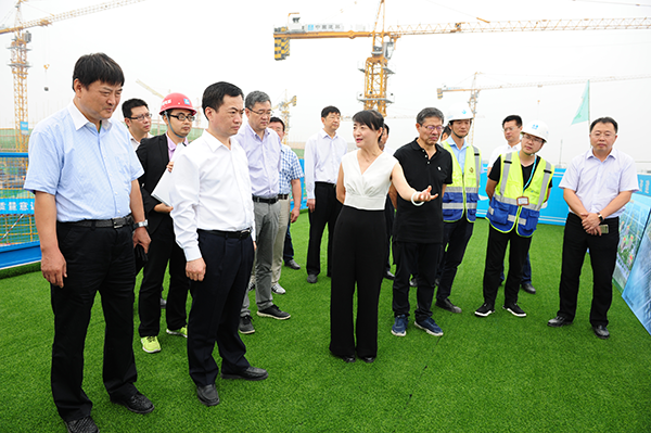 隨后李毅一行在史總帶領(lǐng)下,來到工地現(xiàn)場的二層觀景平臺,面對規(guī)模宏大,塔吊林立的建筑現(xiàn)場,看到項目整體浮出地面,中心醫(yī)技樓已建至二層,李書記對項目建設(shè)進度表示驚喜,同時對建設(shè)管理表示肯定。期間,史總結(jié)合施工現(xiàn)場和效果圖為李書記詳細(xì)介紹了國際醫(yī)學(xué)城的建設(shè)架構(gòu),功能劃分等情況,之后還就規(guī)劃建設(shè)的“一心兩翼 天使之城”健康中國小鎮(zhèn)的設(shè)計理念,“五位一體”功能布局等做了詳細(xì)介紹和說明。