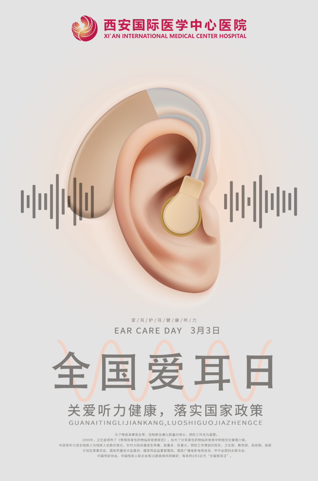 3月3日是第22個(gè)“全國(guó)愛(ài)耳日”。今天,西安國(guó)際醫(yī)學(xué)中心醫(yī)院舉行“助力聽(tīng)力康復(fù) 人人享有聽(tīng)力健康”義診活動(dòng),耳鼻咽喉頭頸外科劉志主任率領(lǐng)醫(yī)護(hù)團(tuán)隊(duì)通過(guò)健康咨詢、免費(fèi)檢查等方式為廣大群眾提供醫(yī)療服務(wù),使大家對(duì)耳聾及其防治、助聽(tīng)器選配有了更多了解。