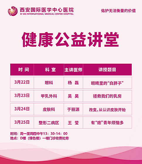 西安國際醫(yī)學(xué)中心醫(yī)院—青年醫(yī)師健康公益講堂預(yù)告