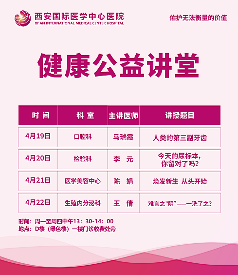 西安國際醫(yī)學中心醫(yī)院—青年醫(yī)師健康公益講堂預告