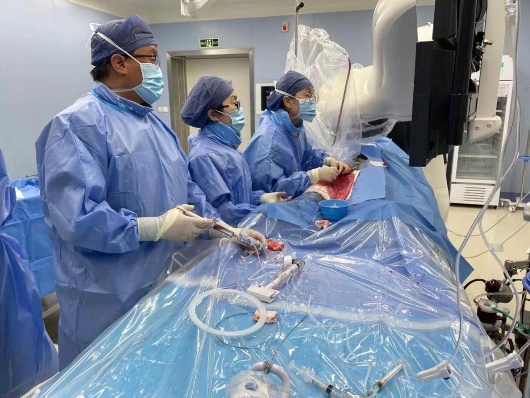 患者已有3枚支架,右冠狀動(dòng)脈還是完全閉塞的狀態(tài),考慮到手術(shù)風(fēng)險(xiǎn)極大,李偉杰建議在體外膜肺氧合技術(shù)(ECMO)輔助下行支架植入術(shù)。體外膜肺氧合技術(shù)是一種高端的人工心肺替代技術(shù),可以暫時(shí)代替患者的心臟和肺臟進(jìn)行做工,常用于各種危重癥患者。由于手術(shù)難度高,風(fēng)險(xiǎn)大,李偉杰副院長帶領(lǐng)由衛(wèi)錦娟副主任醫(yī)師、郭艷杰副主任醫(yī)師、王長鷹主治醫(yī)師、孫闖主治醫(yī)師組成的心臟內(nèi)科三病區(qū)手術(shù)核心團(tuán)隊(duì)分工合作,在心臟外科二病區(qū)主任程亮團(tuán)隊(duì)的保駕護(hù)航下,手術(shù)最終順利完成,患者平穩(wěn)返回病房,家屬激動(dòng)不已。第一位患者手術(shù)結(jié)束后,在李偉杰的帶領(lǐng)下,兩支團(tuán)隊(duì)又著手為另一位嚴(yán)重三支病變患者實(shí)施了ECMO輔助下支架植入術(shù),手術(shù)在團(tuán)隊(duì)密切配合下順利完成。