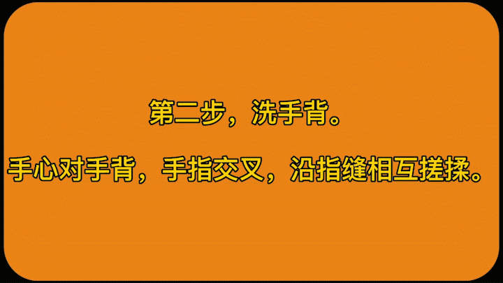 3、認(rèn)真揉搓雙手至少 15s,注意清洗雙手所有皮膚,包括指背、指尖和指縫,具體揉搓步驟(即七步洗手法步驟):