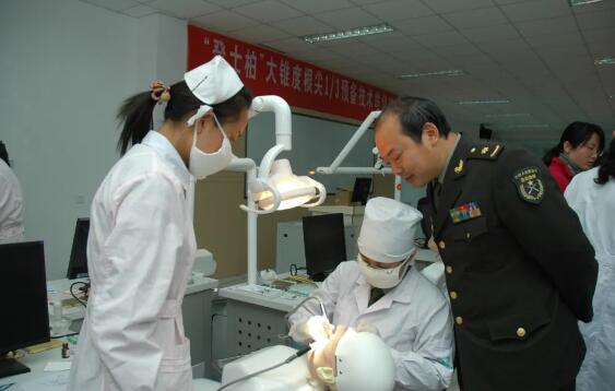 談到這點,倪龍興笑稱是因為“蜂窩爐”。當年被第四軍醫(yī)大學軍醫(yī)系錄取后,學校派往上海統(tǒng)一接受錄取考生的隊長和指導員,在離開上海前一天受同事委托,要買幾個蜂窩爐回西安。倪龍興家住浦東,要到浦西的集合點,需要提前一天到,看到他們攜帶六七個蜂窩爐及其他隨行物品,不由分說幫著搬運行李,農村孩子特有的樸實給他們留下了深刻的印象。在開往西安的火車上,隊長和指導員找到倪龍興,告訴他口腔系有一位錄取考生沒有來報到,問他愿不愿意加入口腔系。“那時候對專業(yè)沒什么概念,都是當兵唄,學什么都行?!比胄2痪?,倪龍興就發(fā)現(xiàn)口腔系的“慘淡待遇”:“你們口腔啊?有什么難學的,一口牙就二三十顆,一天學一顆一個月就搞定了!”倪龍興經(jīng)常會被其它系的學員調侃。“想反駁吧,還不知道說什么。因為聽著好像也就是那么回事。”口腔不受重視是倪龍興當時的感覺。