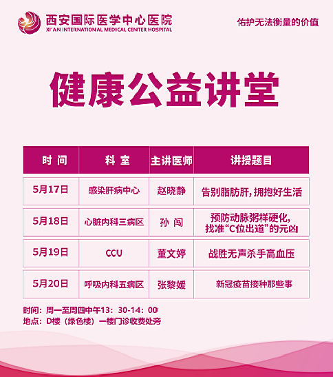 西安國際醫(yī)學中心醫(yī)院—青年醫(yī)師健康公益講堂預告