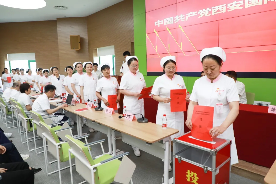 醫(yī)教部副主任馮軍強(qiáng)宣讀了《中共西安國(guó)際醫(yī)學(xué)投資股份有限公司委員會(huì)關(guān)于同意西安國(guó)際醫(yī)學(xué)中心有限公司黨支部升格為黨委的批復(fù)》、《大會(huì)選舉辦法》(草案);護(hù)理部主任張敏同志宣讀總監(jiān)票人,監(jiān)計(jì)票人員名單,經(jīng)過(guò)與會(huì)代表審議并通過(guò)。