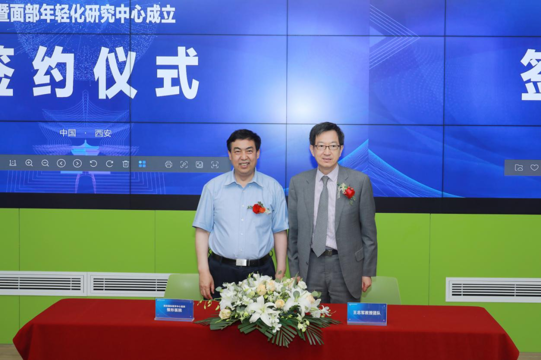 2021年5月22日,王志軍教授團隊入駐西安國際醫(yī)學中心整形醫(yī)院暨面部年輕化研究所成立儀式舉行。西安國際醫(yī)學投資股份有限公司副總裁孫文國、西安國際醫(yī)學中心醫(yī)院總經(jīng)理王志峰以及整形醫(yī)院院長郭樹忠教授等出席。