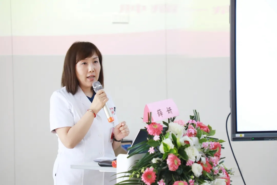 尹強(qiáng)院長(zhǎng)致辭,對(duì)前來參加活動(dòng)的患者和志愿者們表示歡迎,并詳細(xì)介紹了醫(yī)院的整體布局、人員架構(gòu)、??铺厣驮\療優(yōu)勢(shì)。尹院長(zhǎng)對(duì)薛妍教授及腫瘤一病區(qū)的工作給予了高度肯定,認(rèn)為本次活動(dòng)對(duì)于促進(jìn)醫(yī)患交流、宣傳腫瘤防治知識(shí)具有積極作用,也衷心祝愿患者朋友們?cè)缛湛祻?fù)。