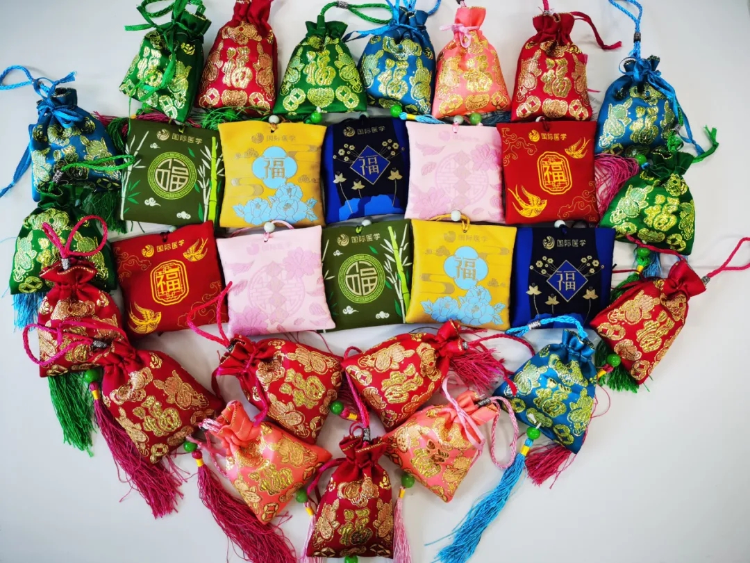西安國際醫(yī)學中心醫(yī)院中藥房為您準備了端午香囊,內含蒼術、白芷、冰片、藿香和艾葉等多種香藥,有辟穢、燥濕、醒神的功效。這款端午香囊富涵植物藥香,甘涼舒適,濃郁不膩??梢耘宕饔谏砩?,或者懸掛車內、房間、背包等處使用。