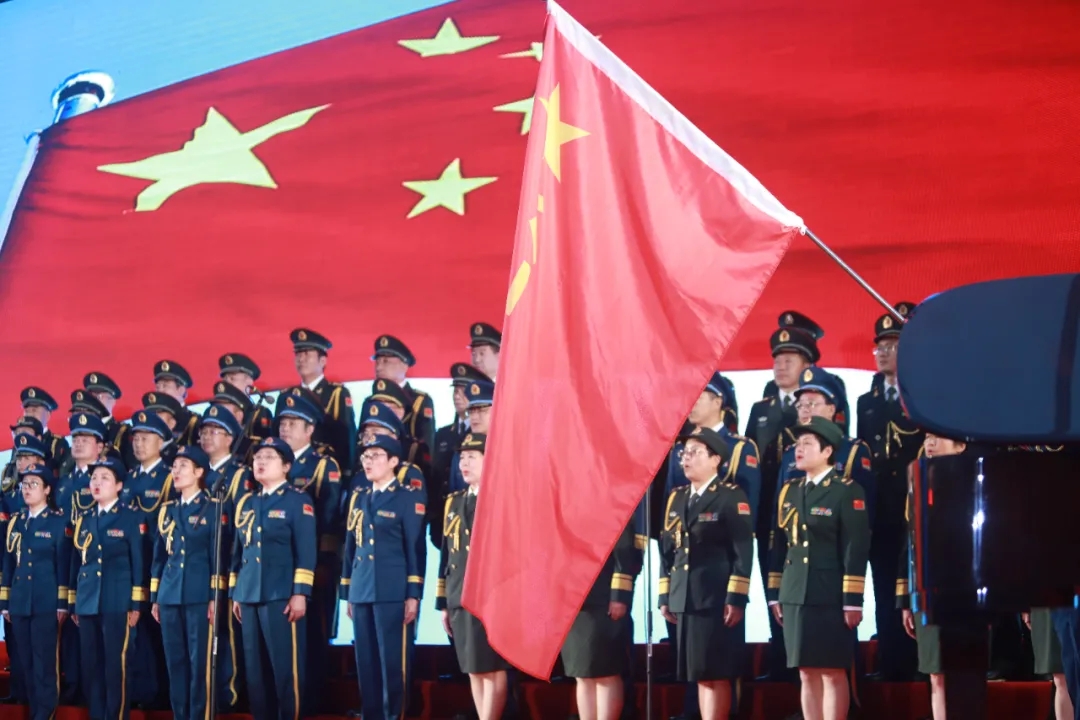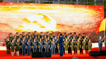 “我是一個兵,來自老百姓……”合唱將《我是一個兵》《沒有共產(chǎn)黨就沒有新中國》巧妙編排在一起?!段沂且粋€兵》鏗鏘有力,氣勢高亢,展示了老兵們永不褪色的軍人風(fēng)采;隨著中國人民解放軍進(jìn)行曲響起,三名軍旗手,邁著堅實的步伐走上舞臺;“沒有共產(chǎn)黨就沒有新中國,沒有共產(chǎn)黨就沒有新中國……”激情高昂的歌聲表達(dá)出每一個人的心聲,合唱融入了京劇唱法,男聲鏗鏘有力,氣勢十足,女聲委婉細(xì)膩,優(yōu)美動聽,極富有感染力,將整場氣氛推向高潮,贏得全場陣陣掌聲。