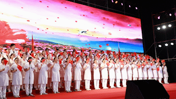 88名醫(yī)務(wù)人員中的預(yù)備黨員、入黨積極分子組成的天使合唱團(tuán),此次參賽曲目是《映山紅》。歌曲《映山紅》系電影《閃閃的紅星》的插曲,表達(dá)了人民對紅軍的熱愛,對英雄的崇敬之情。