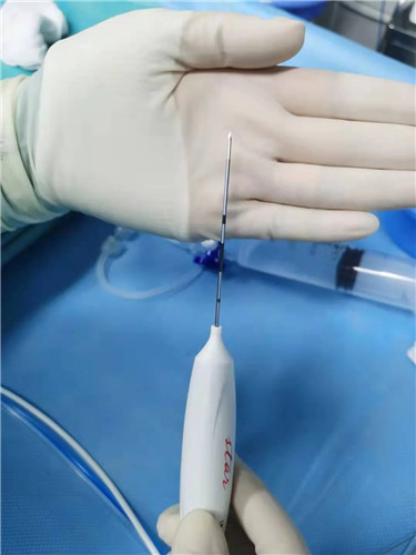 周曉東主任說,傳統(tǒng)手術(shù)是通過頸部正面進(jìn)入、走的是一條“康莊大道”,雖然路好走了,但對(duì)頸前區(qū)組織的破壞也大了;而以上提到的消融術(shù)就是現(xiàn)在治療甲狀腺結(jié)節(jié)的另一種方法。即在超聲的全程引導(dǎo)下,將一根1.4mm粗的電極針插入結(jié)節(jié)內(nèi)部,通過發(fā)射高頻電流,微波,甚至激光使病灶溫度升高,發(fā)生凝固壞死,然后人體會(huì)慢慢將這些壞死的組織吸收掉,結(jié)節(jié)(腫瘤)因此“消失”。