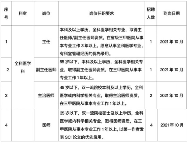 應具有本科及以上學歷;省級三甲醫(yī)院工作經(jīng)歷,愿意從事全科醫(yī)學專業(yè);有較強醫(yī)教研能力。