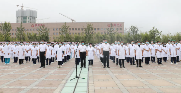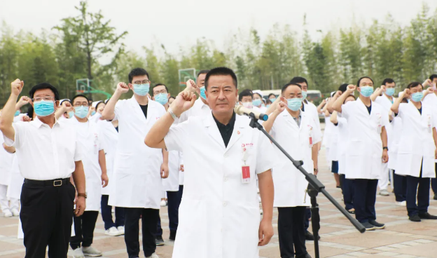 最后,劉延彤院長(zhǎng)助理帶領(lǐng)全體新入職員工舉起右手,莊嚴(yán)宣誓,鏗鏘有力的誓言在萬人廣場(chǎng)久久回蕩。