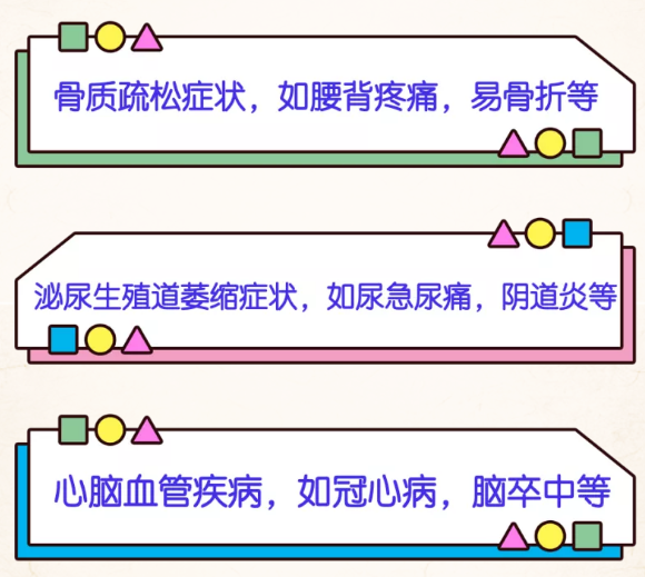實際上,除了近期危害,因缺乏雌激素會帶來遠期危害,嚴重影響女性的健康和生活質(zhì)量,比如: