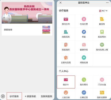 (2)已經(jīng)有就診卡的人員,無(wú)需再進(jìn)行綁卡,直接點(diǎn)擊【就診卡】查看個(gè)人ID號(hào)。