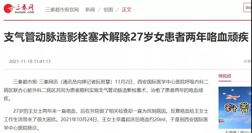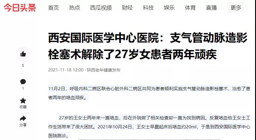 支氣管動(dòng)脈造影栓塞術(shù)解除了27歲女患者兩年頑疾