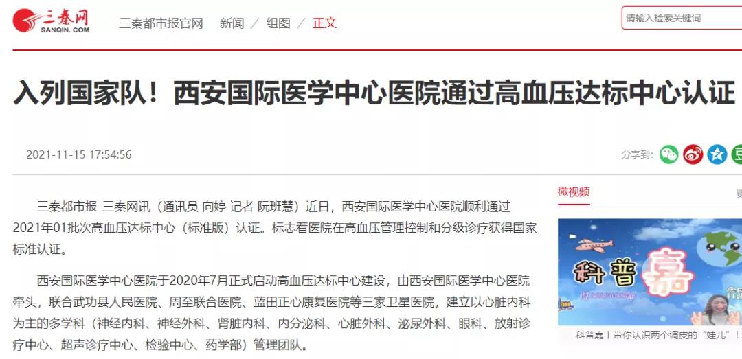 入列國(guó)家隊(duì)!西安國(guó)際醫(yī)學(xué)中心醫(yī)院通過高血壓達(dá)標(biāo)中心認(rèn)證