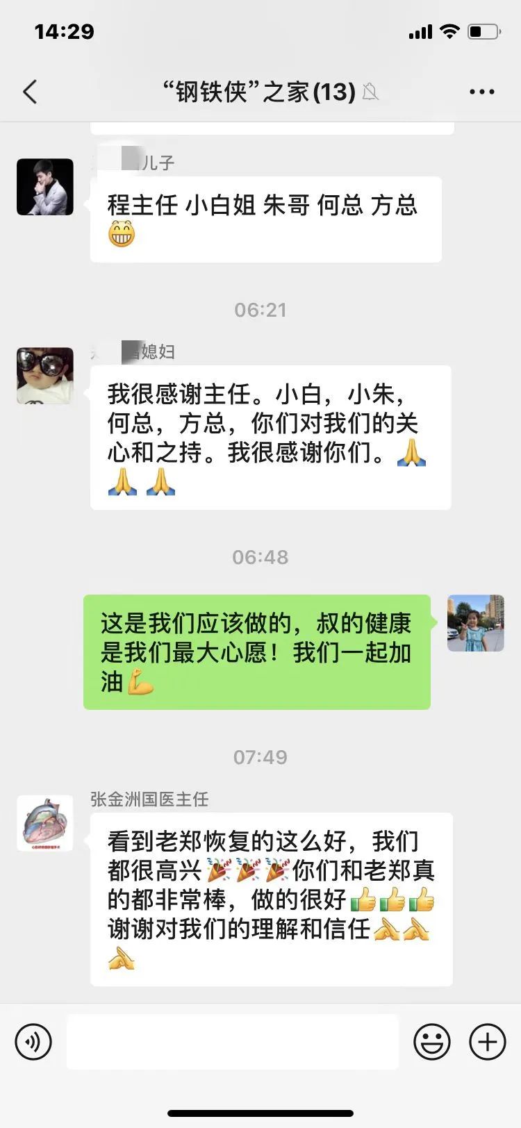 “他們專門為我建了一個‘鋼鐵俠之家’的微信群,我和張院長還有科室的醫(yī)護人員都像家人一樣,我每天都會在群里發(fā)我的日常狀態(tài)、吃的藥量”,面色紅潤的老鄭步履輕盈地走到駕駛座:“別說開車了,在這之前,我連路都走不了,現(xiàn)在我可以去接送孫子上下學(xué)?!?
