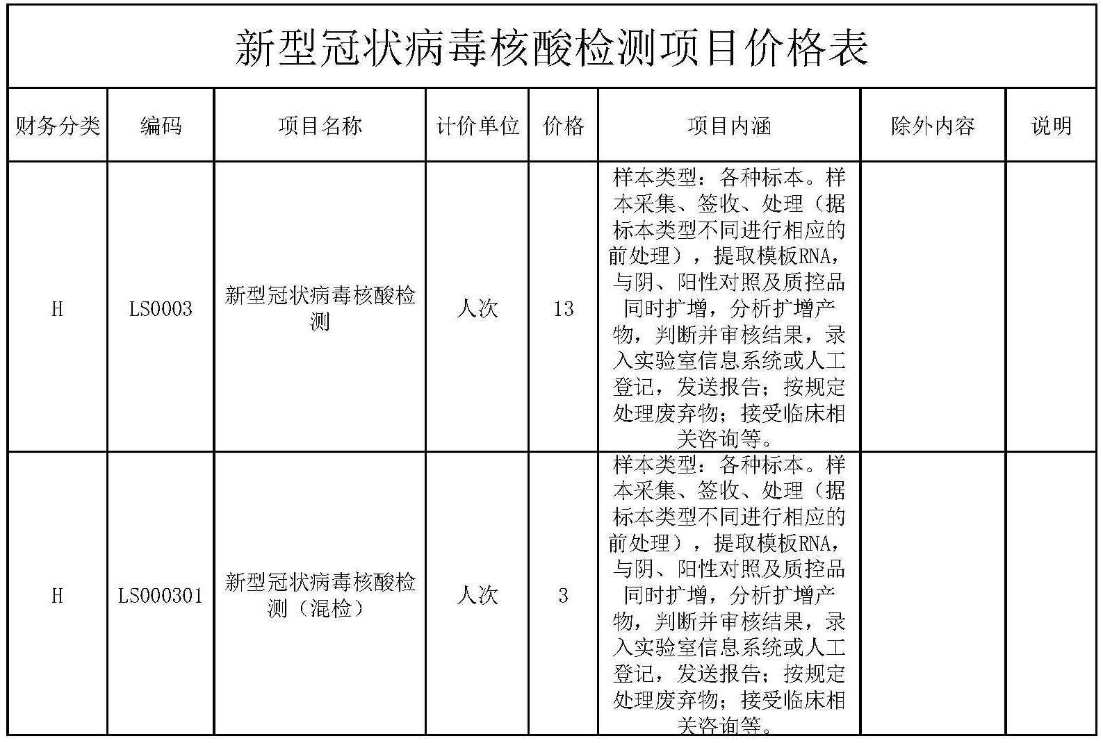 新型冠狀病毒核酸檢測項(xiàng)目價(jià)格表