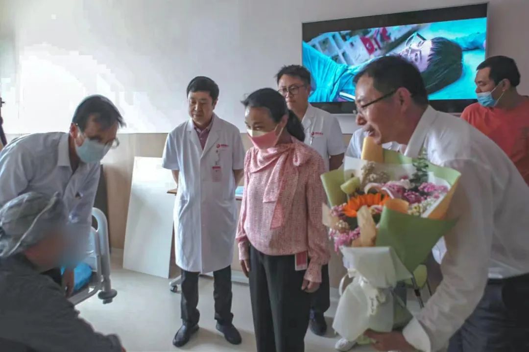 護士節(jié)前一日李女士出院時,國際醫(yī)學副董事長王愛萍、腦科醫(yī)院副院長賀世明為她送上鮮花和救助金,希望她早日康復,和抗疫中千千萬萬的白衣天使一樣,繼續(xù)發(fā)光發(fā)熱。