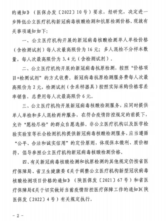 關(guān)于進(jìn)一步降低公立醫(yī)療機(jī)構(gòu)新冠病毒核酸檢測和抗原檢測價格的通知