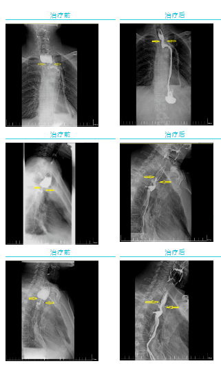 經過一個周期的放療,李先生明顯感受好多了,可以正常吃飯喝水。食管鋇餐造影顯示,食管吻合口區(qū)腫塊明顯縮小,食管狹窄減輕。