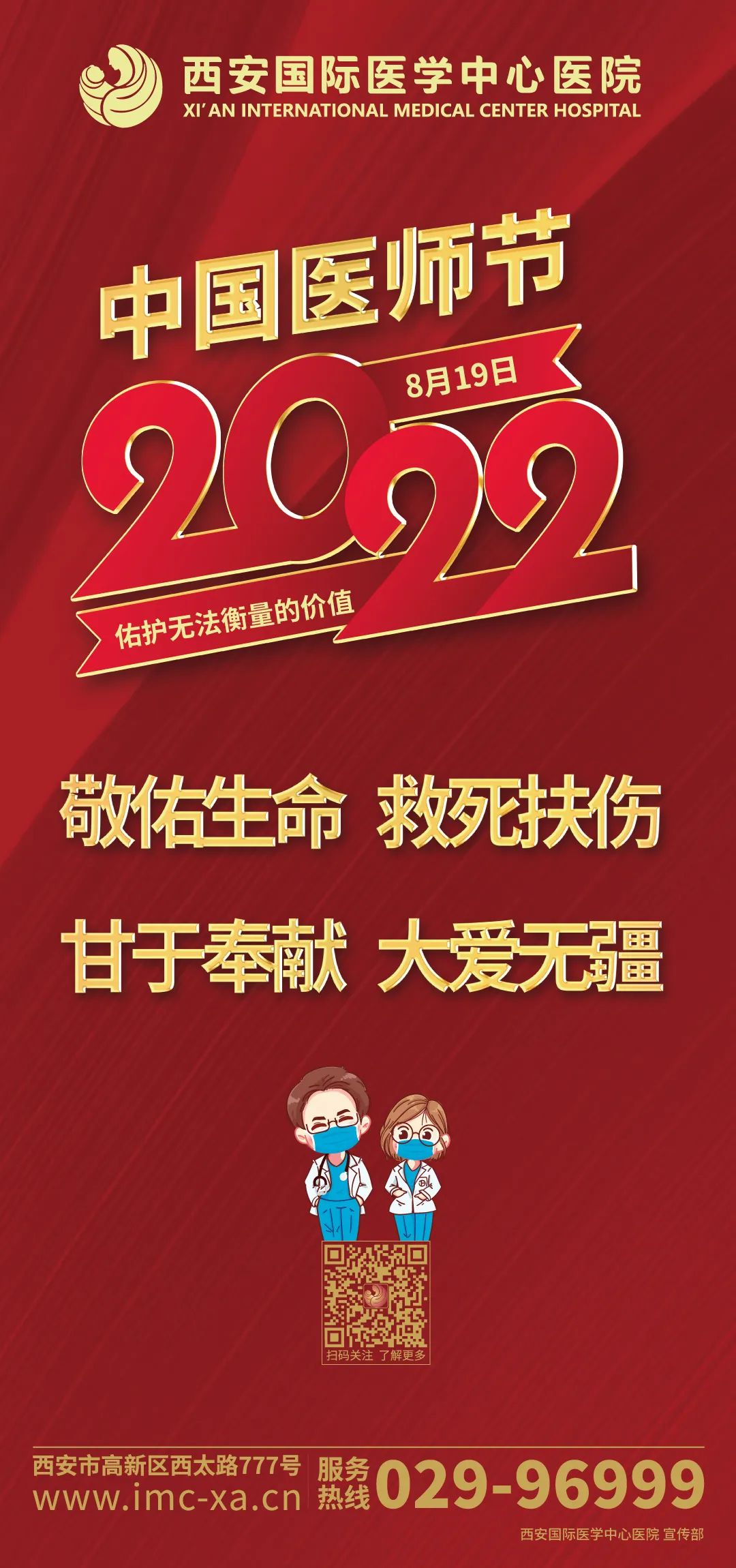 健康所系,性命相托。西安國際醫(yī)學(xué)中心醫(yī)院全體醫(yī)師堅(jiān)持人民至上、生命至上,以全方位、全周期保障人民健康為己任,用實(shí)際行動(dòng)踐行 “敬佑生命、救死扶傷、甘于奉獻(xiàn)、大愛無疆”的崇高精神,為建設(shè)健康中國、增進(jìn)人民健康福祉作出新貢獻(xiàn)。